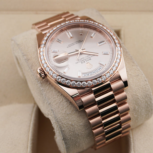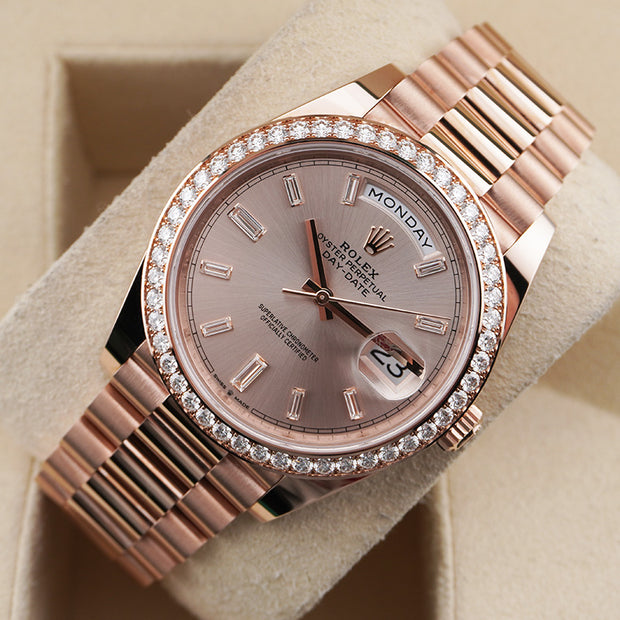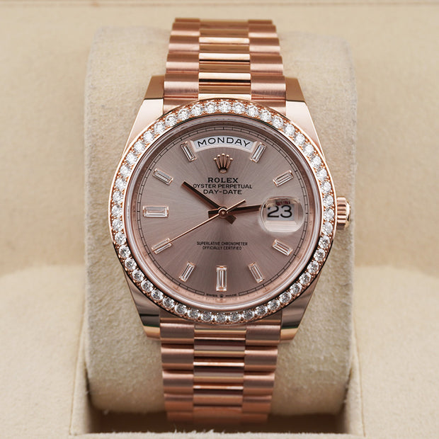 Rolex Day-Date 40 Presidential 228345 Diamond Bezel Baguette Sundust Dial