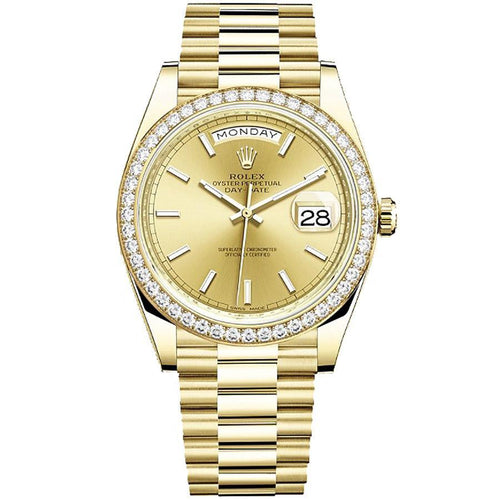 Rolex Day-Date 40 228348RBR Diamond Bezel Champagne Dial
