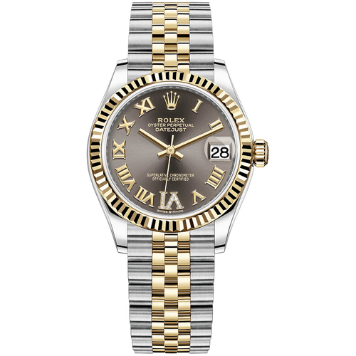 Rolex Datejust Dark Grey Diamond Roman Numeral Dial Fluted Bezel 31mm 278273