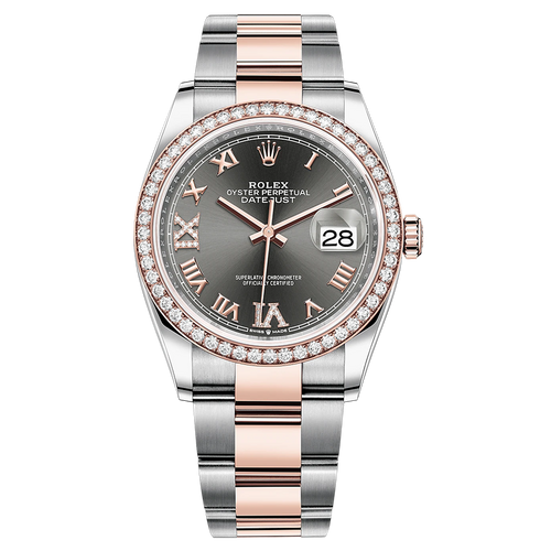 Rolex Datejust Slate Roman Numeral Dial Diamond Bezel 36mm 126281RBR