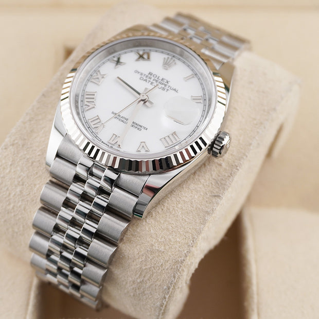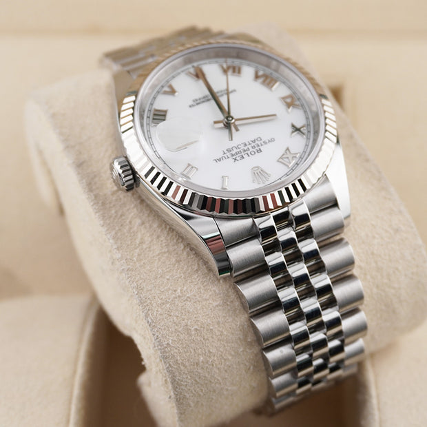 Rolex Datejust White Roman Numeral Dial Fluted Bezel 36mm 126234