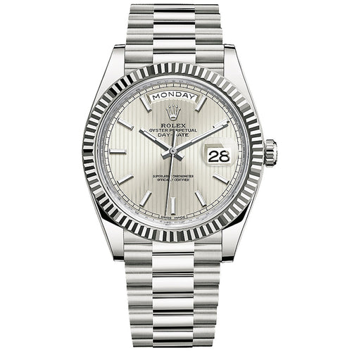 Rolex Day-Date 40 Presidential 228239 Fluted Bezel Silver Stripe Motif Dial
