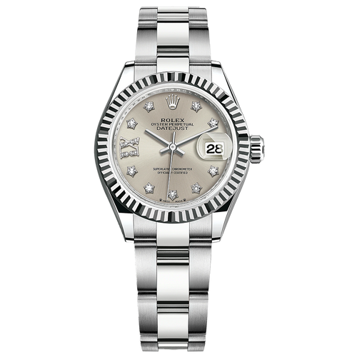 Rolex Lady-Datejust Silver Diamond Star Dial Fluted Bezel 28mm 279174
