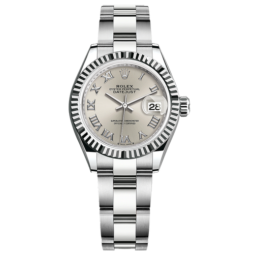 Rolex Lady-Datejust Silver Roman Numeral Dial Fluted Bezel 28mm 279174